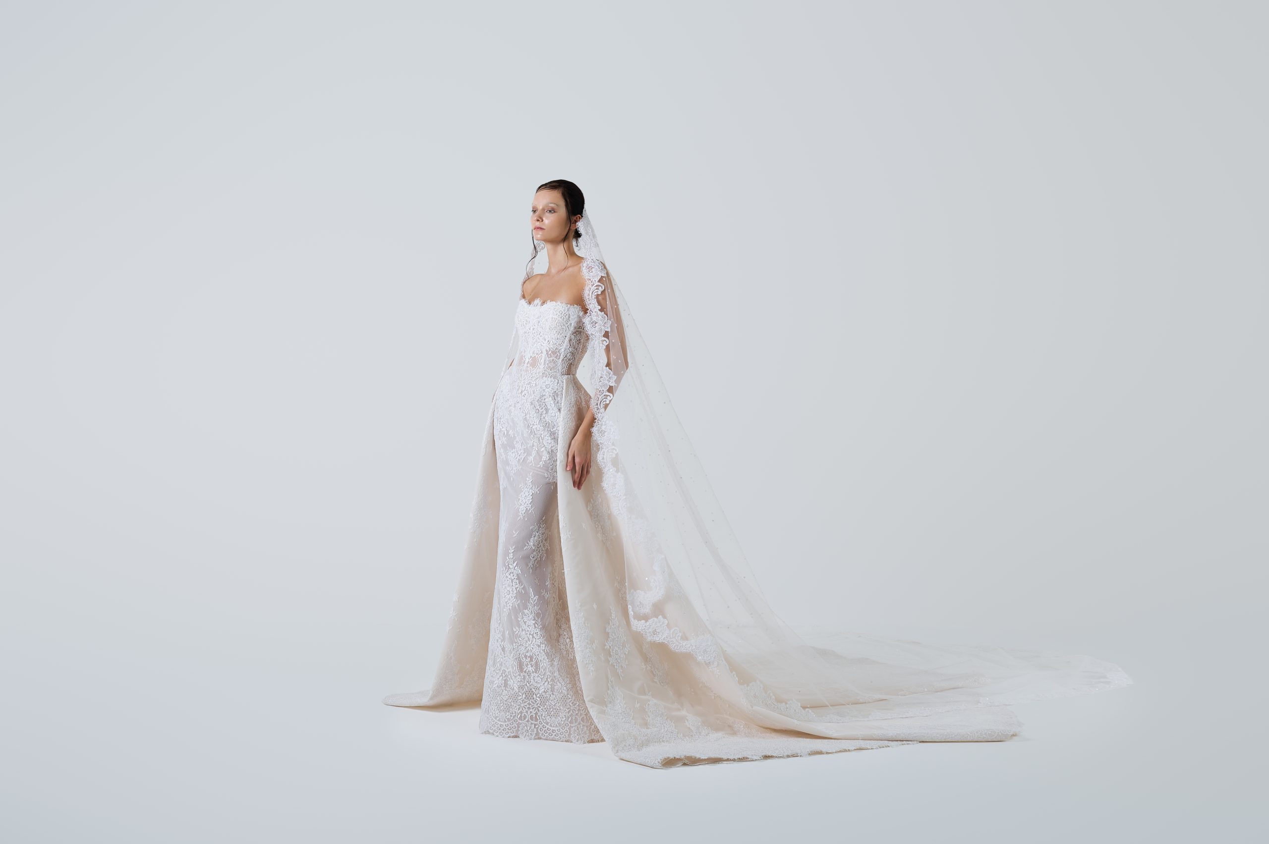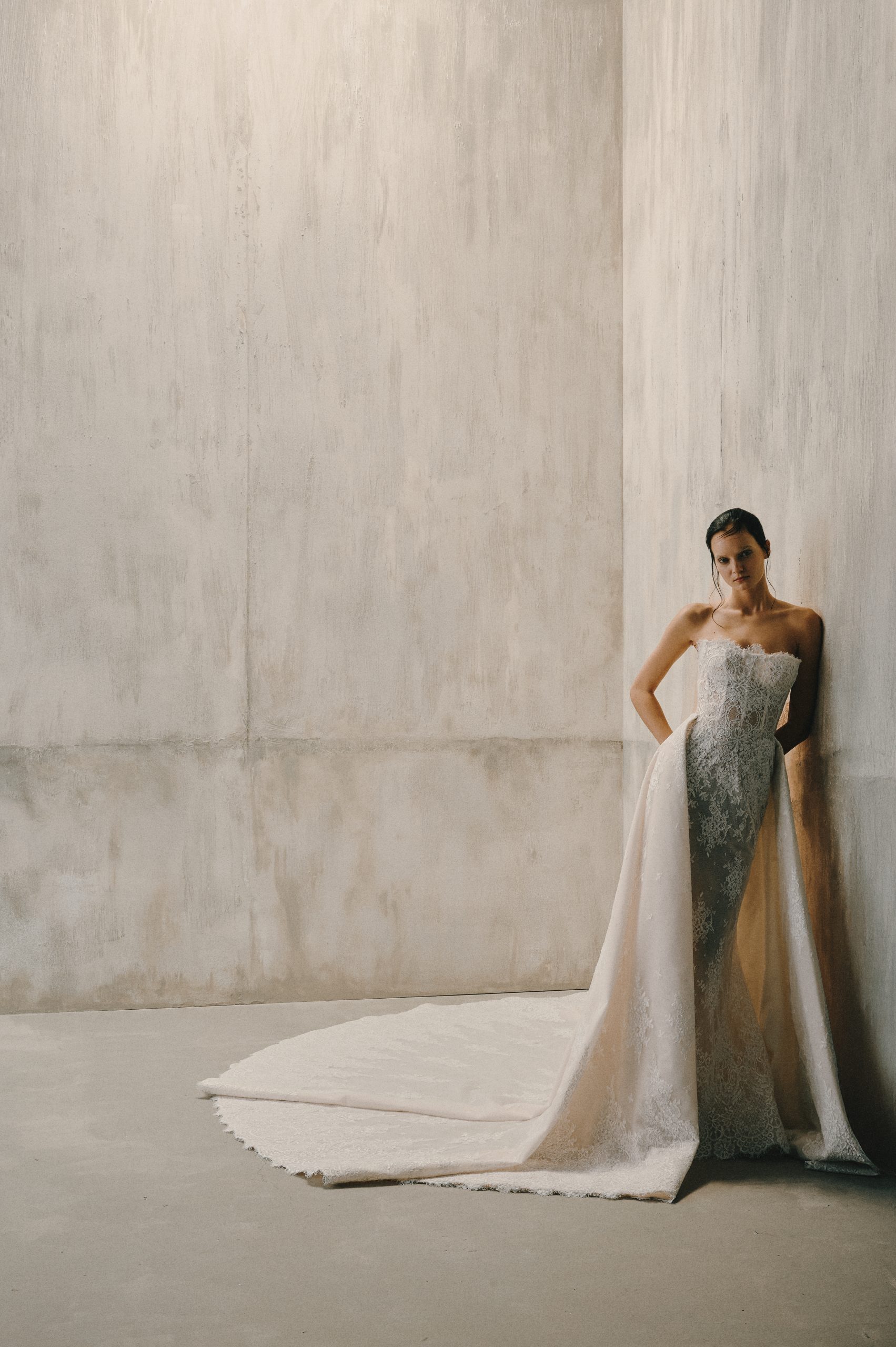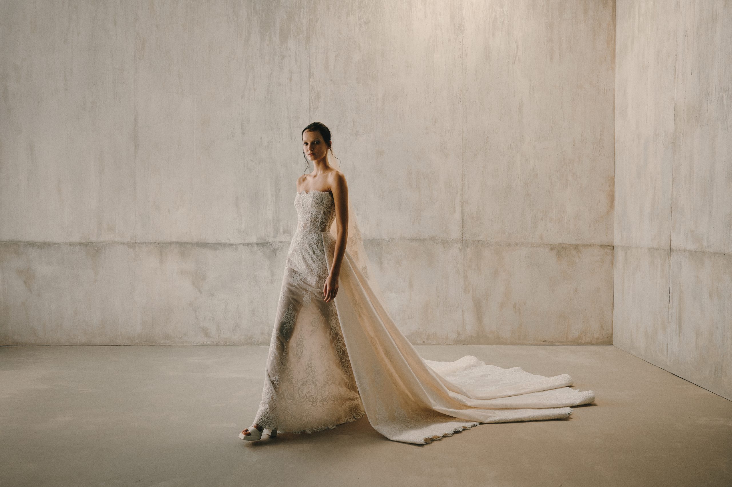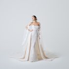 A study in stillness, where silence becomes form. Its lines are pure and decisive, yet softened by the way light bends across them โ sharpness dissolving into glow. The gown does not chase attention; it gathers it, quietly, as though the air itself pauses in its presence. There is a sense that the fabric is listening โ to the moment, to the space around it, to the breath of the one who wears it. Serenity turned sculptural, it is elegance distilled into calm.