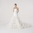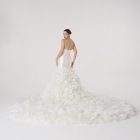 Each layer seems weightless, a fragment of air disguised as form, carrying both fragility and abundance. It is not simply a gown but the memory of a garden unraveling, luminous and eternal, a fall that becomes flight.