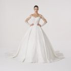A gown that does not enter a room — it claims it.