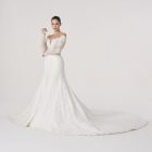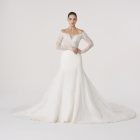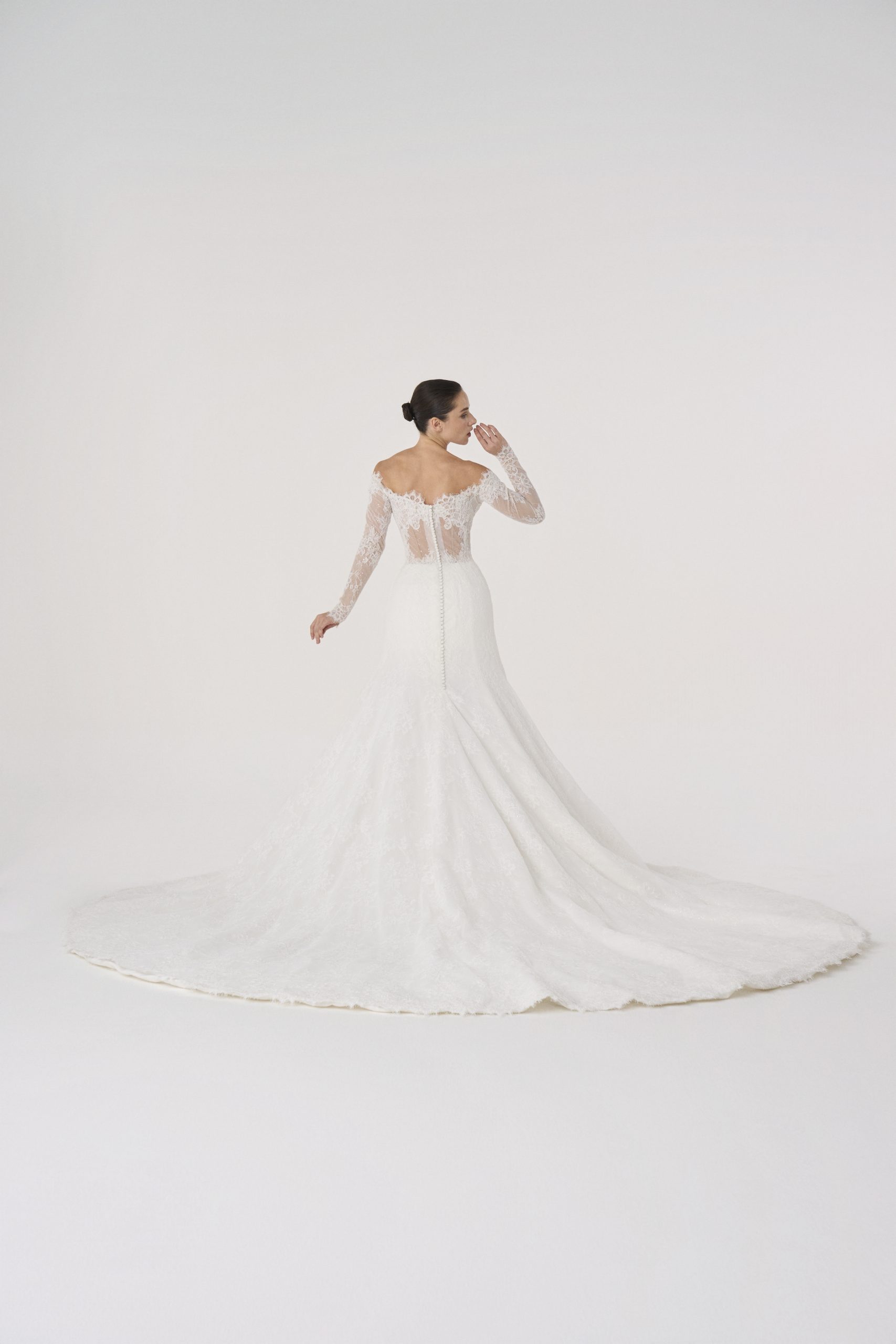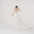 Its skirt falls with measured weight, echoing the architecture of cathedrals, yet softened by intimacy. It is ceremony in motion, a reverence both given and received.